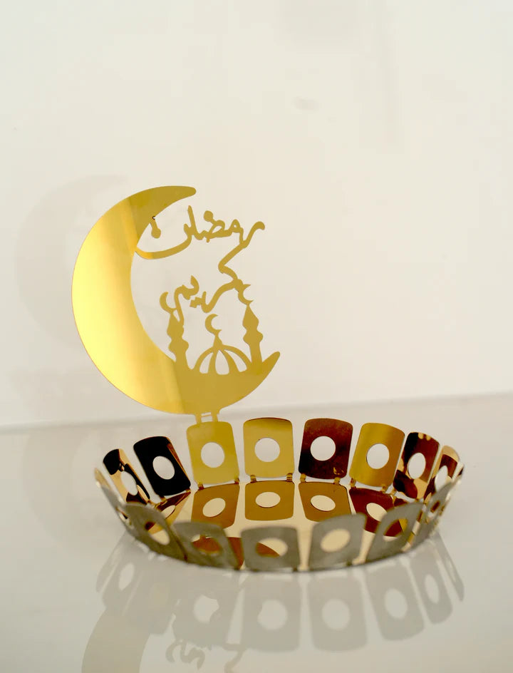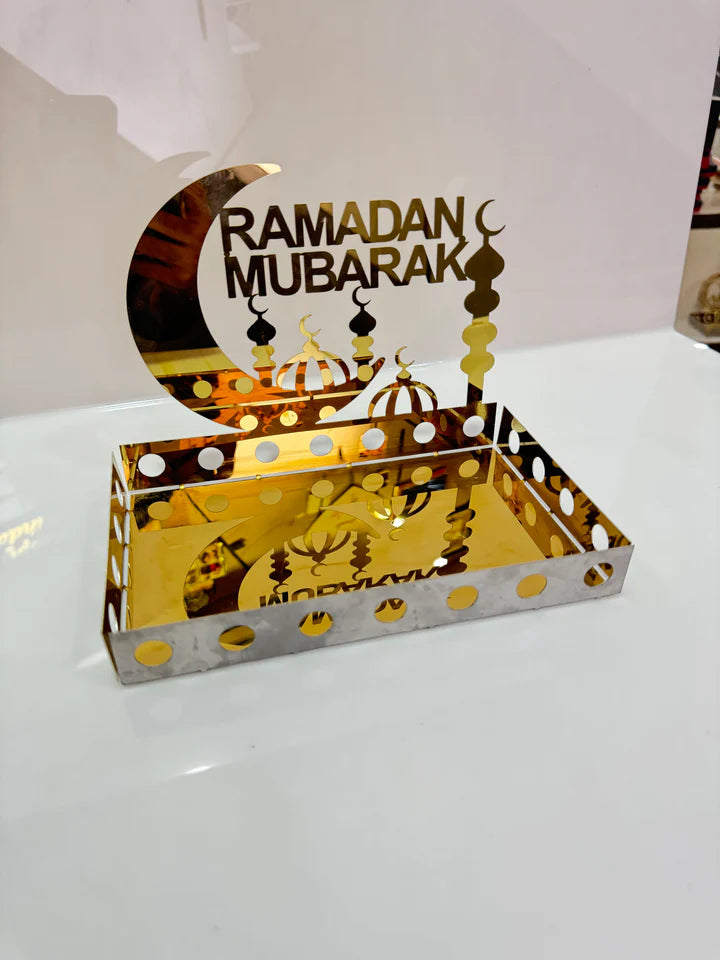 Welcome the blessed month with this elegant Ramadan Kareem tray, thoughtfully designed to enhance your festive gatherings. Crafted with attention to detail, this tray serves as a beautiful centerpiece for displaying dates, sweets, and refreshments during iftar celebrations. Its sophisticated aesthetic complements traditional décor while adding a touch of refinement to your dining table. Perfect for serving guests or organizing your Ramadan essentials, this tray combines functionality with festive charm, making it an essential addition to your seasonal collection.